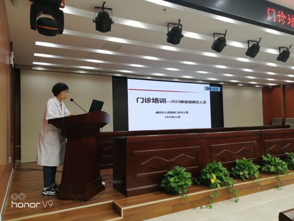 为规范我院门诊医生的诊疗行为,进一步提升门诊服务水平,门诊办于11月4日下午在一号楼四楼多功能厅举办了《2019年新聘专家岗位培训》。培训内容包括门诊制度、门诊诊疗规范、门诊预约挂号、门诊突发事件处置等。培训的主要对象为2019年各科室新聘专家(主任医师、副主任医师、副主任药师、副主任技师)、新聘主治医师、主治药师。