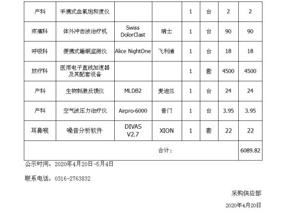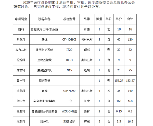 廊坊市人民医院2020年度拟采购设备公示