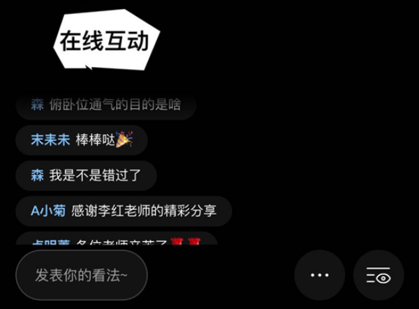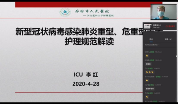学习过程中,可随时在线提问,两位老师给与解答,同时内容可回放,因工作不能参会的护理人员可利用业余时间观看,大大提高了学习效率和能动性。此此活动是我院重症专委会一次全新的尝试,希望通过这种方式,发挥重症专委会的专业特点,搭建重症患者交流的平台,为我院重症护理工作发展发挥积极作用。
