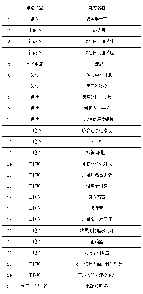 我院拟采购以下医用耗材: