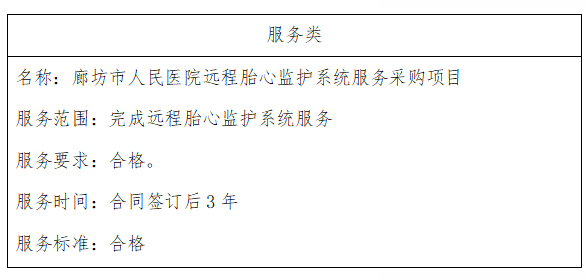 二、项目名称:廊坊市人民医院远程胎心监护系统服务采购项目