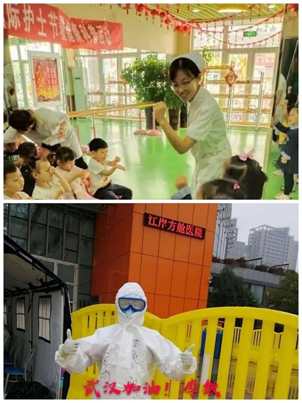 刚刚32岁的李敏却有着10年的党龄,说话嘴角微微上扬的她心思细腻,老成稳重,虑事周到。在刚刚到达武汉驻地宾馆的当天,作为组长,她来不及做过多休整,马上清点所备物资。在防护物资紧缺的武汉,她必须要做到心中有数,把物资用至刀刃上。当晚,李敏将穿脱防护服的流程看了一遍又一遍,还不时与护理部老师沟通修改,第二天就组织大家反复练习,她深知在疫情肆虐的武汉严密防护对她们的重要性。更换驻地宾馆的当天,李敏第一时间划分了屋内区域,并用视频指导一行姐妹屋内防控布点,她将进屋消杀流程写在镜子上拍照片给大家,她把各种干燥衣物的方法分享给大家,上班出发前提醒大家防护细节下班回来强调消杀要点,每天如此,不厌其烦,她心里牢牢记着医院领导的嘱托:不负使命,凯旋而归!进入方舱医院之前,李敏为了让患者不抵触好亲近,恶补常用武汉方言,她把自己的电话和微信都告诉患者,虽然隔着厚厚的防护服,却不能阻隔她们一起对抗病毒的心!为了不让年迈的父母担心牵挂,至今她都没有告诉父母她在武汉一线。
