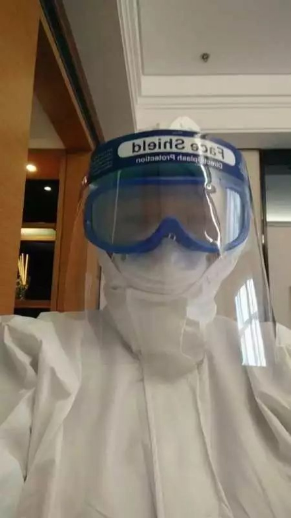 护目镜时不时的往下流哈气水,每次护理操作都不太敢呼吸,怕哈气影响视线。但实际上,我们一直在模模糊糊中度过,透过护目镜,努力睁大眼睛仔细瞅,生怕错过了一丝细节,影响诊疗效果。好在,没有出现一丁点儿差错!和几位护士妹妹来来回回穿梭在一百多张病床间监测体温,实施护理操作,时间过得好快,不知不觉又一天了!