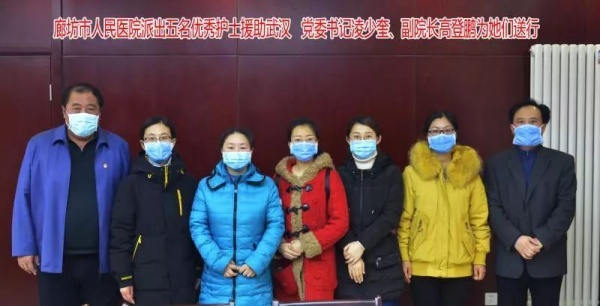2月9日早上,廊坊市人民医院接到市卫健委紧急通知——“马上抽调五名护士支援湖北,中午出发!”副院长高登鹏立即部署护理部从支援备战梯队中挑选政治素质、业务能力、健康状况等综合素质过硬的护理骨干组成了赴鄂医疗救治队。各科护士长迅速做出安排,五名护士分别是呼吸内科胡波、李敏,神经内科赵珊珊,神经外科宋亚坤,全科医学科董昊岩,短短一小时内她们即收拾好了行装,一支业务能力全面、技术过硬的队伍整装待发!