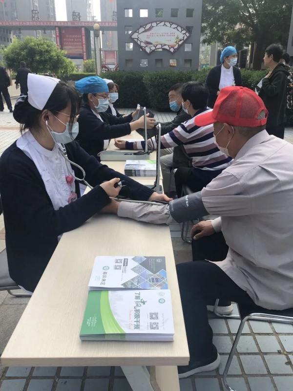 在义诊活动现场,医护人员们为居民测量血压,讲解防病治病知识及发放宣传资料,针对居民关心的脑血管病治疗、高血压如何控制等知识予以耐心解答。刘秀俊护士长细致地为居民讲解保持正确生活方式对疾病预防的重要性,鼓励居民们树立积极乐观的生活态度,养成健康的生活习惯。医护协作帮助社区居民解决用药、饮食及预防等方面的困扰。受到居民们的称赞。