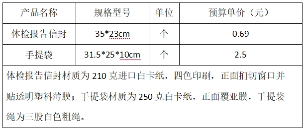 我院拟采购一批体检报告信封及手提袋(详情请见说明及附图),诚邀符合条件的供应商报名。