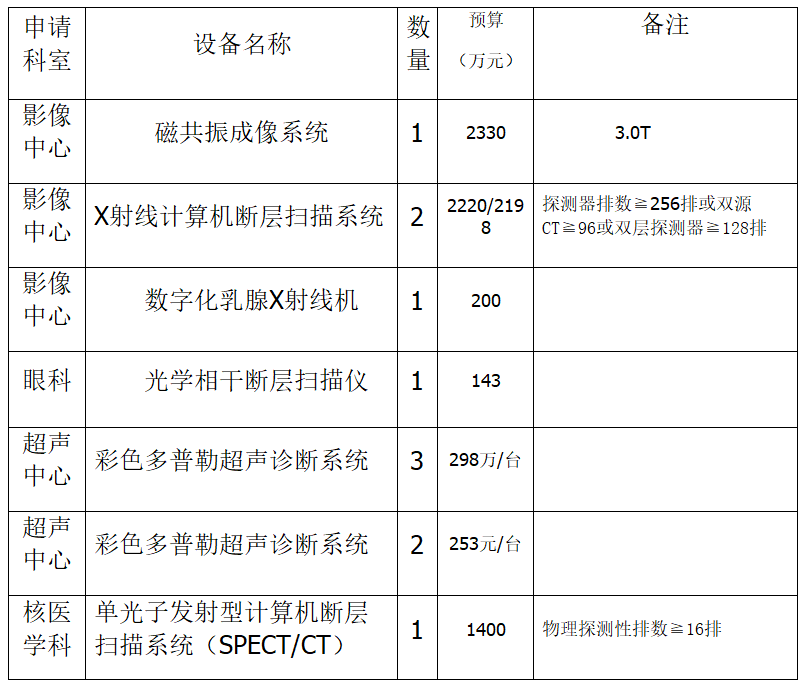 我院拟对以下设备进行采购前技术咨询