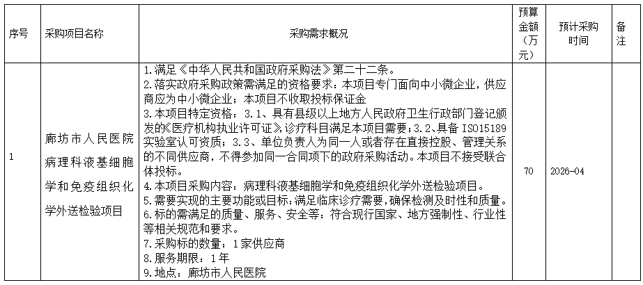 为便于供应商及时了解政府采购信息,根据《财政部关于开展政府采购意向公开工作的通知》(财库〔2020〕10号)等有关规定,现将廊坊市人民医院2026年 01 至12月采购意向公开如下: