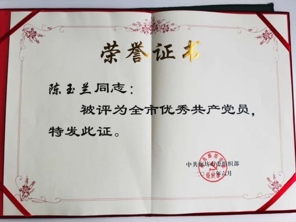 今年是中国共产党成立99周年,是全面建成小康社会收官之年,是抗击新冠肺炎疫情取得全面胜利的大考之年。新冠肺炎疫情发生以来,我院党委带领全院党员干部和职工高举习近平新时代中国特色社会主义思想伟大旗帜,增强“四个意识”,坚定“四个自信”,做到“两个维护”,坚决贯彻落实党中央和省、市委决策部署要求,始终把人民群众生命安全和身体健康放在第一位,全力以赴阻击疫情。特别是检验科副主任陈玉兰同志危难时刻挺身而出,第一时间请愿加入这场战“疫”,母亲突然离世,她强忍悲痛,毅然坚守在战场。陈玉兰同志信念坚定、对党忠诚、勇于担当、甘于奉献、履职尽责,为广大党员作出了榜样,被中共廊坊市委组织部评为“优秀共产党员”。