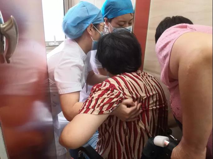 一位坐着轮椅的双下肢瘫痪住院患者来门诊做完超声检查后,医生要求她排空膀胱后再查一次,由于她体重比较重,她的护工自己一个人没办法把她扶到厕所的马桶上,想先把她带回病房,分诊护士得知后立刻主动提供帮助,大家齐心协力协助患者入厕后,又把患者扶到超声科的诊床上继续检查,患者激动地说:“谢谢你们!遇到你们,我今天真幸运!”