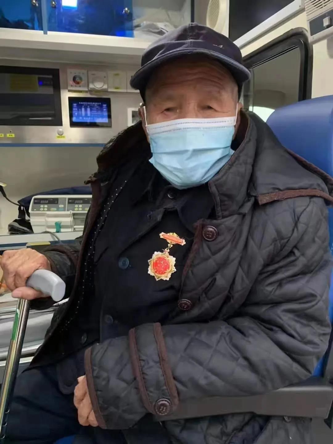 1月13日下午,廊坊市因新冠疫情封城进行交通管制,所有交通工具及私家车辆禁行,我院一名住院患者的家属无法回到养老机构。这名家属是一位85岁高龄的抗战老兵,居住在龙河爱心家园。由于年龄较大,我院120急救科经请示院领导及医务部后,由120急救科救护车组负责将老英雄安全送往住地。