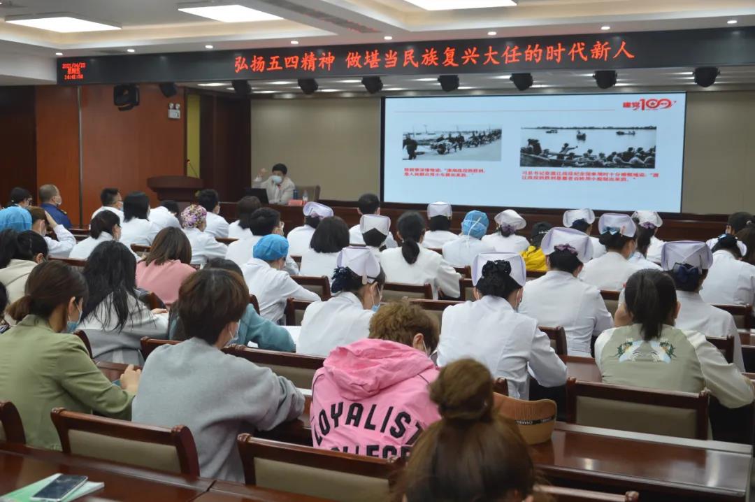 在“五四”青年节到来之际,为深入学习领会习近平总书记在党史学习教育动员大会上的重要讲话精神,扎实推动我院党史学习教育开展,进一步加深对党的历史的系统把握,更好地知党史、听党话、跟党走,提高我院党员、团员青年党史学习教育的质量和水平,4月23日下午党办室在四楼多功能厅组织开展了党史学习教育培训,会议由党办室副主任、团委书记刘莉莎主持,团员青年、团干部、入党积极分子、发展对象及预备党员等共计110余人参加。