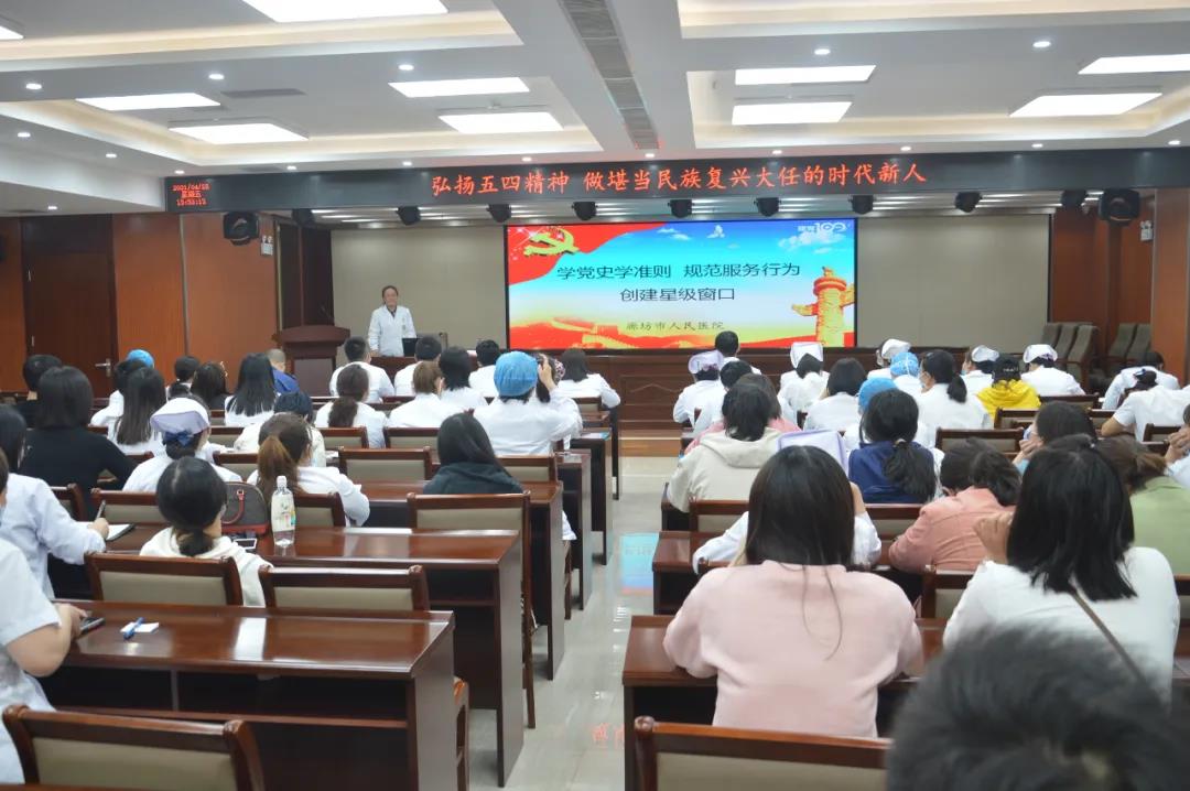 此次会议以党史学习教育为主题主线,首先邀请北华航天工业学院教师、廊坊市青年讲师团讲师、廊坊市基层宣讲先进个人杨路轩围绕中国共产党的百年辉煌作了一场精彩生动的授课,进一步加深了大家对中国共产党百年历史的了解,厚植马克思主义信仰,增强实现中华民族伟大复兴中国梦的信心。随后,由党办室刘丽娟带领大家进行规范守则教育,共同学习《中国共产党廉洁自律准则》,解读《廊坊市人民医院创建星级窗口工作实施方案》。最后,预备党员在鲜红的党旗下,身穿工作服,胸前佩戴党徽,进行了庄严的入党宣誓仪式,一声声铿锵有力的入党誓词,更加坚定了每一位党员为共产主义事业奋斗终身的信念和决心。