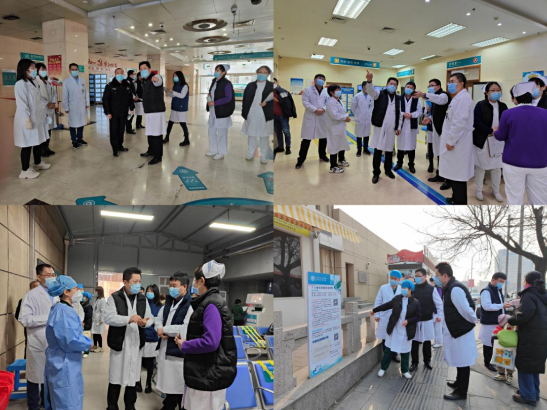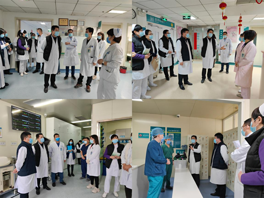 院领导深入一线,从疫情防控、医疗救治、安全生产等方面入手,对院区各卡口道闸、门急诊预检分诊、发热诊区等主要疫情防控点位工作运转和对疫情防控具体要求的执行落实情况进行实地察看。在全科医学科、儿一科、新生儿科、神经外科、手术室、肾内科透析室、重症医学科、急诊科、药房、静配室、检验科等科室,院领导对科室春节值班安排情况、应急预案、物资药品储备、病人管理情况等进行了检查督导。同时本着及时消除安全隐患风险点、杜绝假期安全生产事故发生的原则,对危化品管理和大型医疗设备运行,电气、燃气、供水、氧气等基础设施设备,以及消防安全疏散指示标识、消防栓和灭火器材配置情况进行了全面细致的排查。