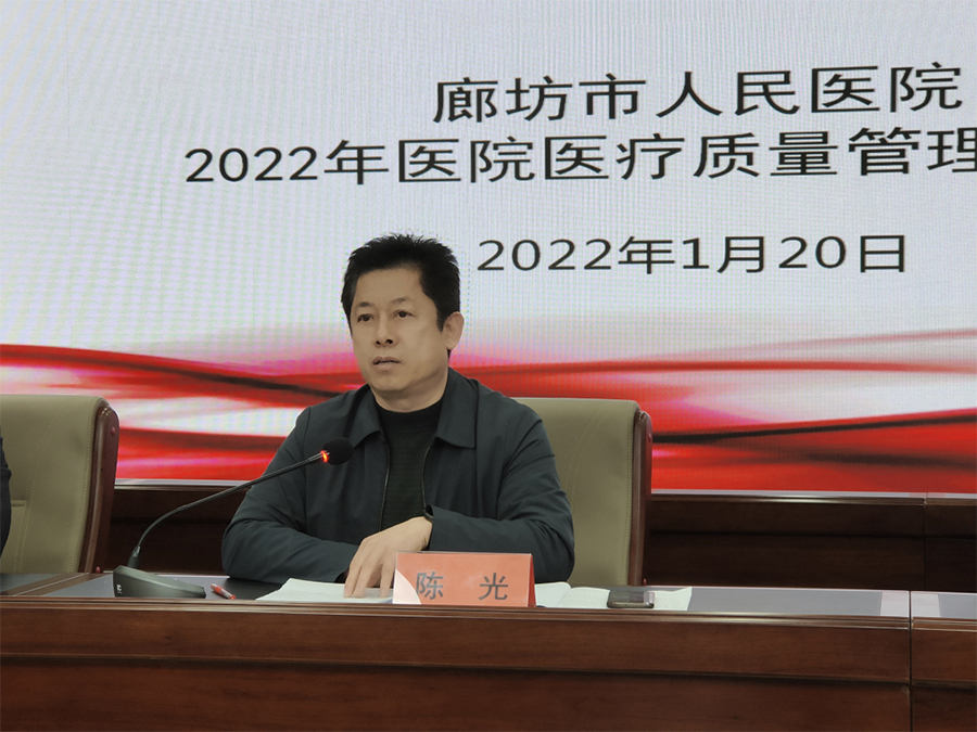 1月20日,我院召开医疗质量管理工作会议,院长陈光主持并做重要讲话,总会计师李庆昆、副院长冯双利、贾子超、薛增明出席,中层管理人员共100余人参加。会议对2021年医疗质量管理工作进行全面总结,并对2022年医疗质量的工作重心和管理目标进行总体部署。