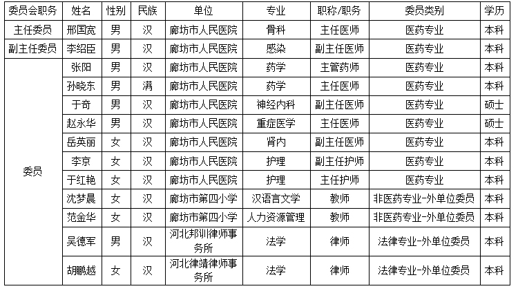 廊坊市人民医院临床试验伦理委员会于2021年11月16日成立,是为临床试验专设的独立工作机构,以《赫尔辛基宣言》、中国《药物临床试验管理规范》及《药物临床试验伦理审查工作指导原则》等为指导,并受中国相关法律、法规约束。其职责是保护受试者的权益和安全,尤其是弱势受试者。
