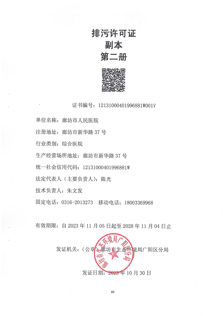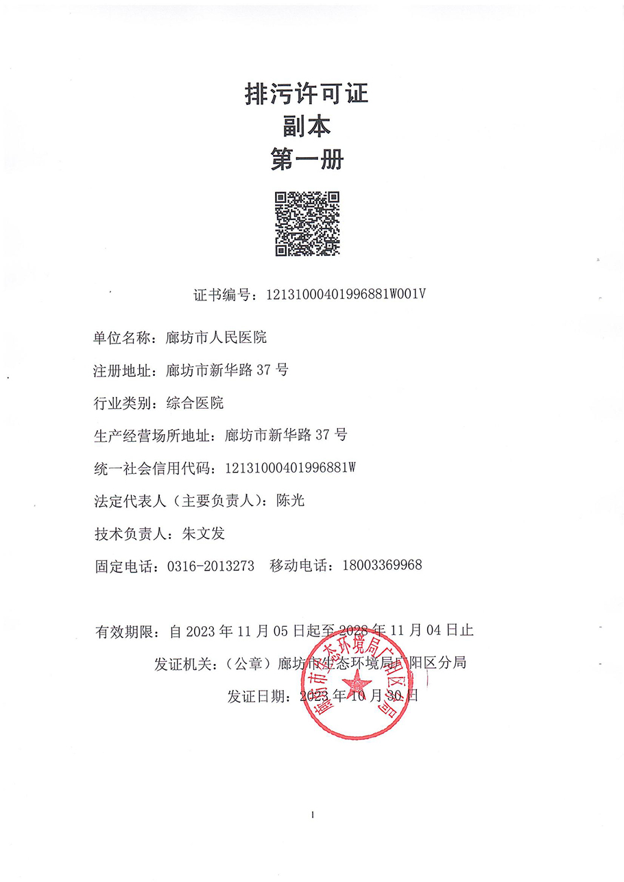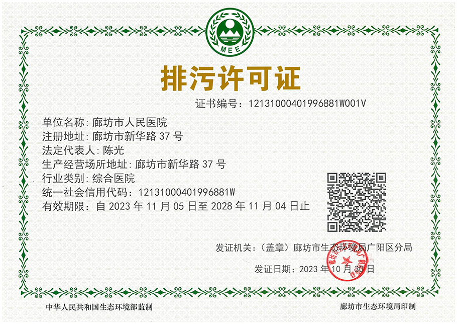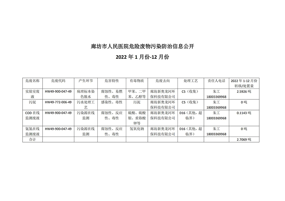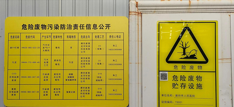 上图为《廊坊市人民医院危险废物防治责任信息公示牌》