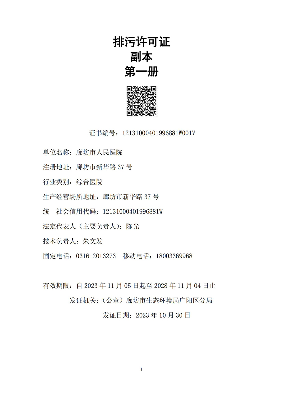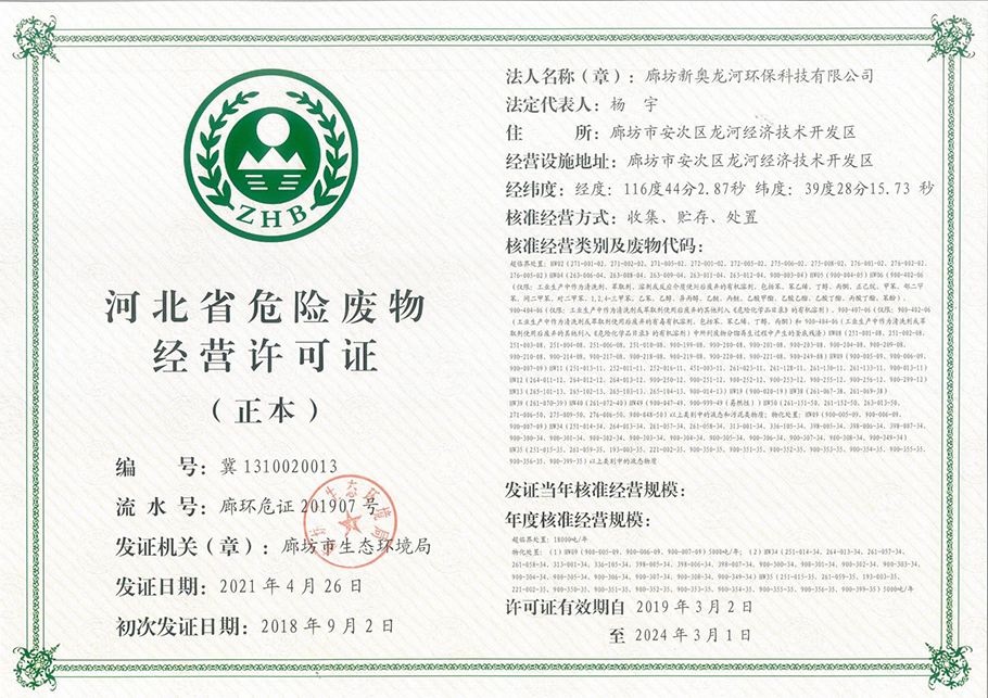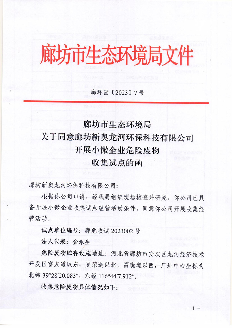 廊坊市人民医院危废处置合同附件1-新奥龙河危险废物经营许可证