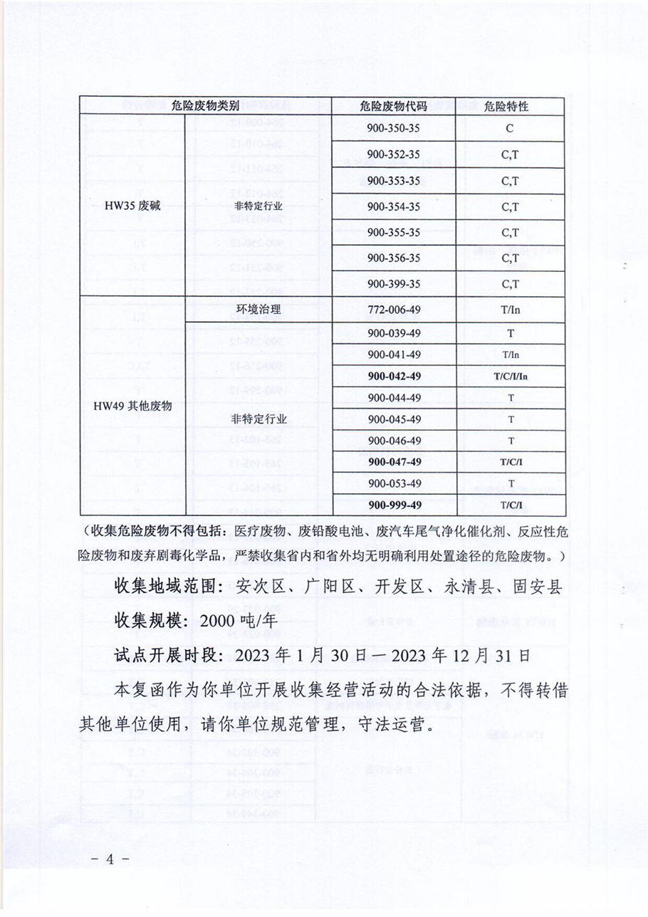 廊坊市人民医院危废处置合同附件2-小微企业危险废物收集试点函