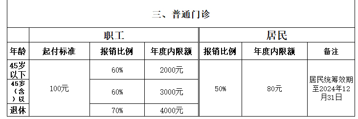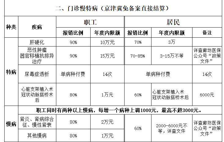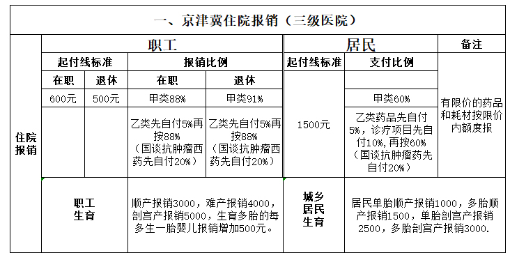 廊坊市医保报销比例汇总简表