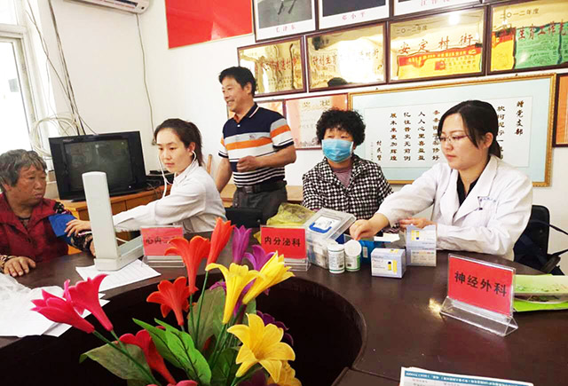 神经外科的陈凯医生细致耐心的为老人们检查了身体,讲解了关于老年人常见的神经系统疾病知识。护士长赵春燕认真详细地记录每位老乡的情况,如记录血糖值时详细标注空腹、餐后2小时以及随机血糖,遇有血压过高的患者,反复测量并且测量对此上肢加以对照。