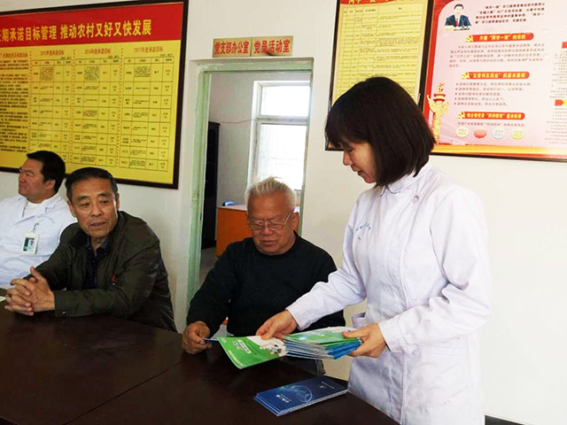 心内科的李咏梅护士长热情的向村民们发放了老年人常见心脏疾病的健康宣教资料,与辛薇医生一起为高血压患者进行用药指导,详细讲解不同降压药的作用与副作用。