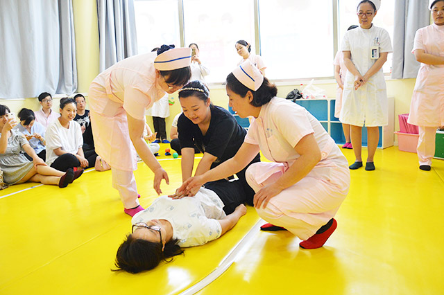 5月19日上午,儿科护理专业委员会成员来到霸州市宏瑞御景小区早教中心,为年轻的父母和早教中心的老师们教授婴幼儿突发意外事件的紧急救护技能,培训内容包括小儿惊厥和气管异物的紧急处理方法。委员会的老师们借助图文并茂的多媒体课件和现场模拟演示的方法,为家长讲解相关知识并演示急救手法,并与现场家长进行了良好的互动,亲自手把手的传授、耐心的指导。授课结束后,委员们就家长在日常护理孩子过程中遇到的问题进行了详细的解答。