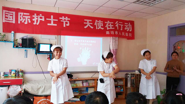 5月阳光明媚,春风温润,空气中弥漫着醉人的花香,在这个温暖芬芳的季节里,我们迎来了第106个“国际护士节”。门诊分诊的天使们响应护理部“5.12国际护士节,天使在行动”的号召,利用业余时间,将标准六步洗手法,自己填词,自编自导成儿歌的形式,计划把健康知识普及到孩子们中间去。