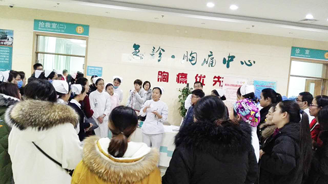 为了配合并保证我院群体事件抢救工作的顺利开展和进行,提高全院机动库护理人员和急诊科的应急能力和抢救成功率,2017年12月29日上午,护理部于急诊科大厅对一百余名机动库护理人员进行了群体事件应急预案演练培训。
