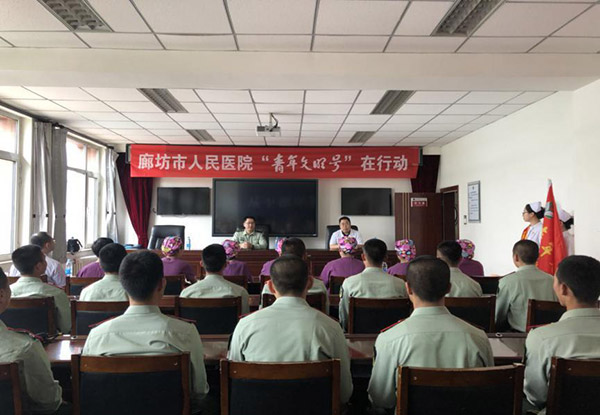 为积极响应团中央的号召,大力宣传“青年文明号”精神,在第107个国际护士节来临之际,廊坊市人民医院急诊重症医学科组成医疗小分队于2018年5月11日来到新华路消防中队,开展“青年文明号在行动 急救培训进军营”活动。