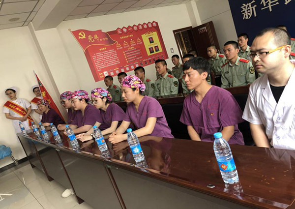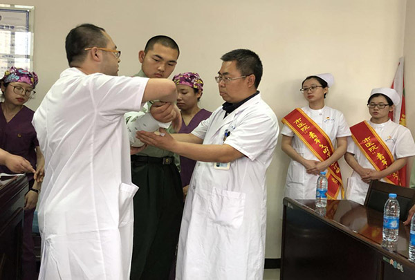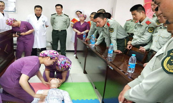 有一种绿草叫军人,有一种白衣叫天使,我们是亲人是战友,我们要永远做党和人民的忠诚卫士,做人民生命的保护神,愿赴汤蹈火尽显英雄本色,愿与死神争锋,奉献爱心更展铁汉柔肠。急诊重症医学科会以这次培训为契机,拉开我们“青年文明号在行动 急救培训进军营”活动的序幕。