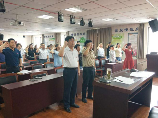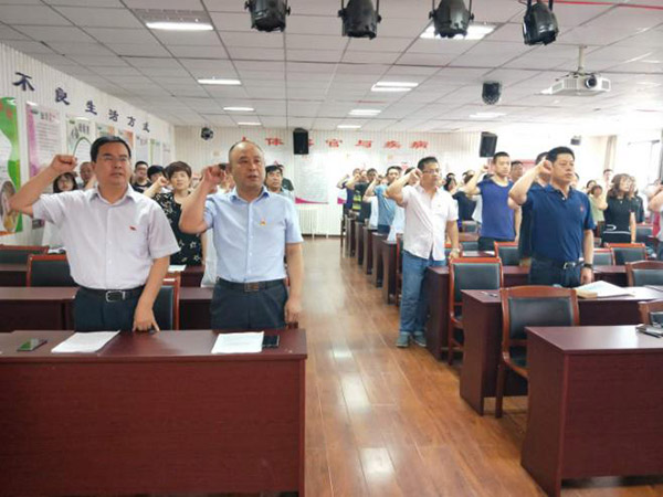 本次大会在庄严的国际歌中拉开序幕,大会由党委副书记冯继海主持,全院130余名党员干部参加。在鲜红的党旗下,全体党员佩戴党徽,举起右拳,重温了入党誓词,让每一位党员进一步坚定了为共产主义事业奋斗终身的信念和决心。