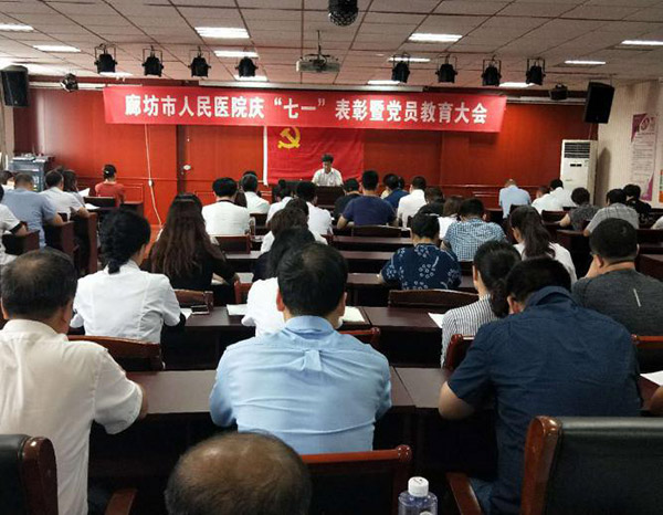 为隆重纪念中国共产党成立97周年,阔步走进中国特色社会主义新时代,廊坊市人民医院于6月22日在教学部六楼召开了“庆七一表彰暨党员教育大会”。