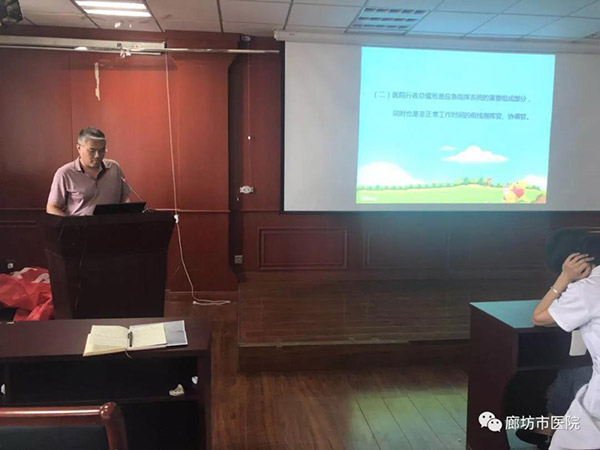为规范医院总值班工作,明确工作流程,提高总值班人员应对突发状况应急协调能力,6月19日,院长办公室组织相关职能部门开展廊坊市人民医院行政总值班人员培训,共60余名行政工作人员参加,院长办公室主任刘芸主持。