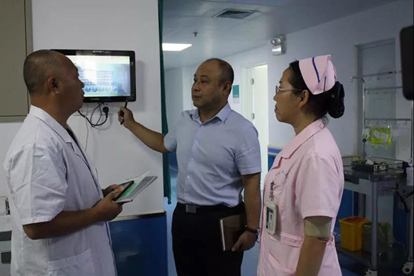此次行政查房坚持以问题为导向,实行现场办公,发现问题立即处理。深入老年病科、儿一科、妇科、肾内科、胸心外科等十余个科室,针对节假日安全生产工作,科室医疗安全、消防安全等重点岗位、重点环节进行逐一摸排。期间,副院长胡建忠向临床一线的医护人员送上了慰问与节日的祝福。每到一处都细心留意、详细询问,针对当场发现的隐患和问题进行现场解决,不能现场解决的问题责成有关科室限时解决,并与各科室医护人员进行沟通,认真听取各科室对院区规划的诉求。