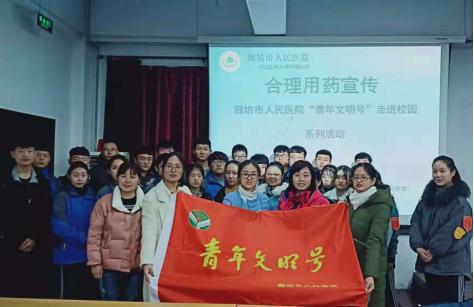 “药品是把双刃剑,既可治病,也可致病”,为普及合理用药知识,提高安全用药水平,在市医院团委组织下,药学部于11月15日走进廊坊市电子信息工程学院,开展了“合理用药,走进校园”活动。
