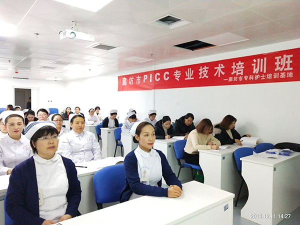 为了在全市推广规范的PICC使用与维护技术,加强专科护理队伍建设,廊坊市第一届PICC专业技术培训班于12月11日在廊坊市人民医院顺利开班。廊坊市护理质控中心主任、市医院护理部部长樊爱玲、副部长尤倩出席了会议,本院静疗专委会成员和来自全市各医疗机构的18名学员参加了活动。