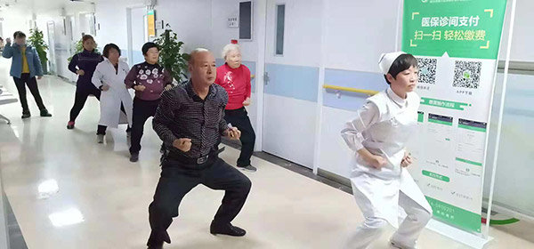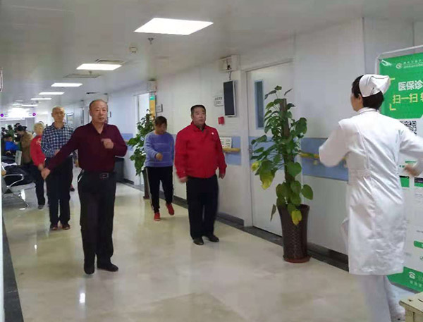 心脏康复护理门诊开诊半年来,不为经济收入,只为通过实践探索心血管疾病患者的康复之路。通过双心评分筛查心血管疾病患者中的焦虑抑郁状态,给予心理疏导、运动治疗或联合心身科药物治疗,连续两周就让患者愁眉舒展,面露微笑。没有场地、没有音乐,就打开手机音频在楼道带领大家练习八段锦、弹力带操,经常来练习的几个患者阿姨天天盼着周三开诊,练习结束还不舍得回家,互相交流着康复运动的心得。如今每周三下午的心脏康复门诊已经成为门诊四楼最靓丽的风景,因为这里是健康生活的新起点。
