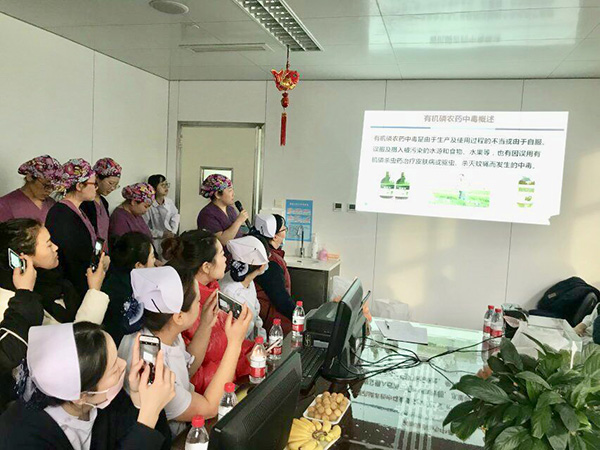 查房由EICU李京护士长主持,汇报病例为有机磷中毒的抢救及护理。选择此病例的原因为该案例涉及120院前急救鉴别、紧急处理、转运,急诊科洗胃、初步解毒救治;ICU序贯解毒治疗等多学科协作问题。查房从看图猜题的游戏环节开始,营造了耳目一新的活跃氛围。随后以情景模拟的形式,还原了EICU为这例有机磷农药中毒患者晨间查房的情景。责任护士张秋艳汇报了查房病人的基本资料、病史、针对此病人存在的护理问题提出的护理诊断及护理措施等。李京护士长参照罗伊护理模式引导了本次查房思路。