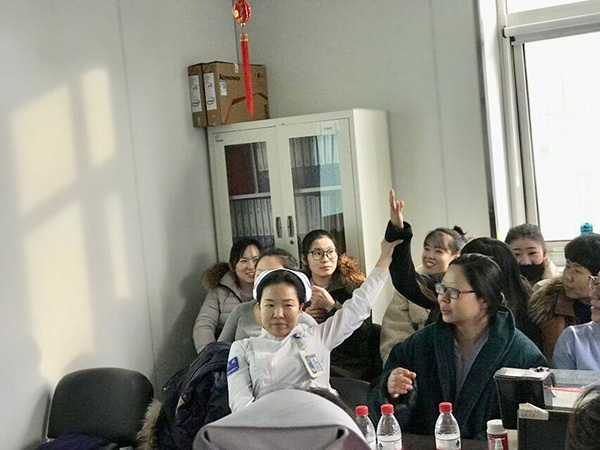 查房结束后,全体参加人员通过二维码问卷对本次查房活动进行了评价,提出了宝贵的意见和建议。李京护士长就“中华护理学会重症专科护士培训班学习体会”向大家进行了精彩汇报,并把获奖个案“不同氧疗策略调整在一例肾移植术后合并肺孢子菌肺炎患者中的应用”进行了现场分享。参加人员一致反映本次查房提高了大家发现问题、解决问题的能力,开拓了思路,获益匪浅。
