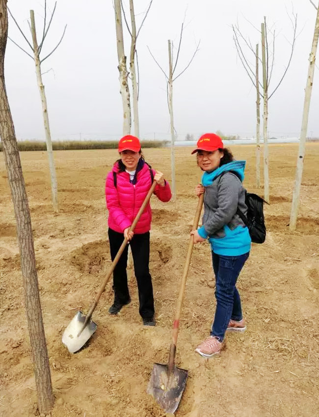 植树现场,大家严格按照要求,按点挖坑、挥锹培土,有的扶树苗、有的浇水……配合协调,各道工序一丝不苟。虽然天气很凉,大家脚底全是泥土,身上被溅了泥水,但党员志愿者们都忙得不亦乐乎。在各位党员的辛勤劳动下,树苗便“亭亭玉立”在新机场育苗基地的沃土上。