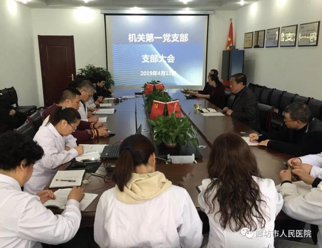4月11日上午,廊坊市人民医院机关第一党支部在三楼会议室召开了支部党员大会,共27名党员参加会议。院领导班子成员凌少奎、李庆昆、刘洁以普通党员的身份参加了此次会议。
