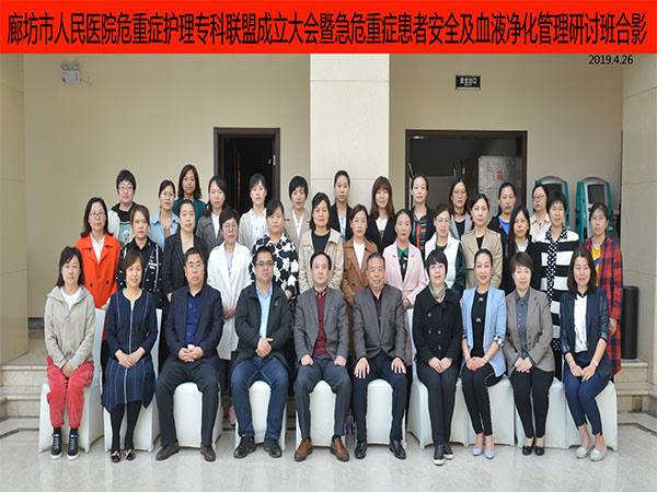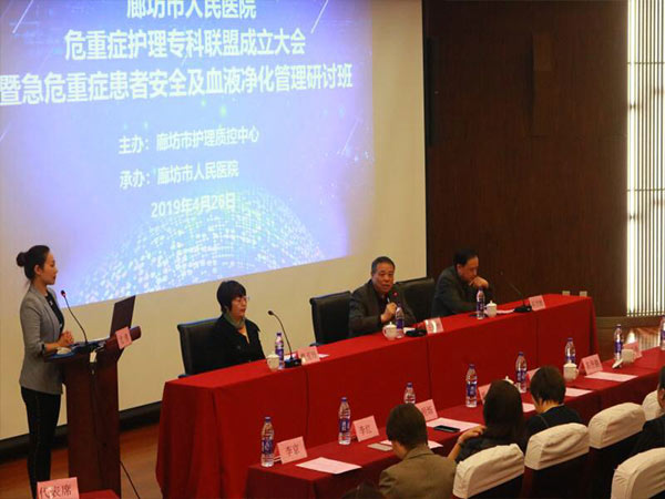 2019年4月28日,廊坊市护理质控中心主办的“廊坊市人民医院危重症护理专科联盟成立大会暨"急危重症患者安全及血液净化管理研讨会”在各级领导的大力支持下,由廊坊市人民医院圆满承办。廊坊市卫健委党委副书记王廷桥、廊坊市人民医院副院长高登鹏、廊坊市护理质控中心主任樊爱玲等领导出席了会议,来自廊坊市、县区的27家联盟单位、各医疗机构领导及护理骨干近300人参会。