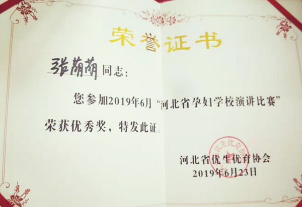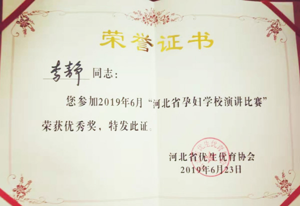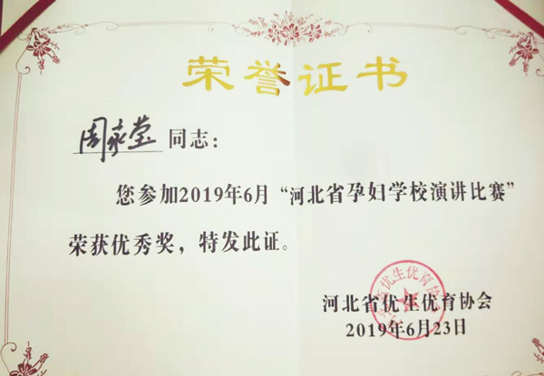 月底“河北省孕妇学校演讲比赛”中,产科护理骨干周佳莹、李静、张萌萌均获得了优秀奖,为我院赢得荣誉。