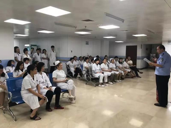 安全保卫部卢俊坡首先通过讲解我院消防安全“四个能力”建设普及消防安全知识,结合现实生活中的实际火灾案例讲解预防火灾和处置火灾的重要性,提高我院门诊人员的消防安全责任意识。