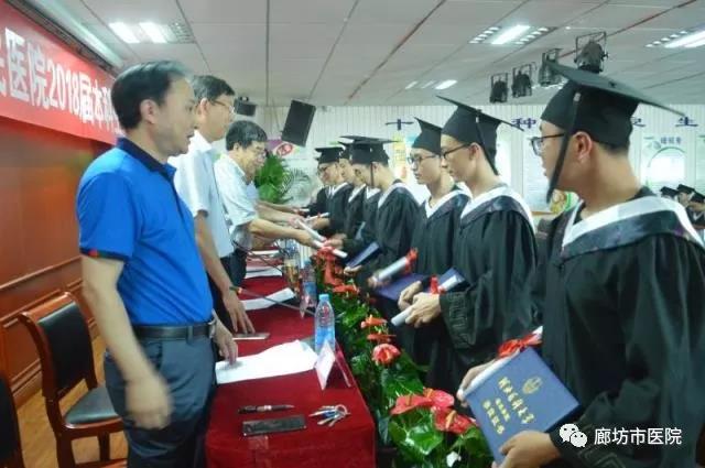 6月26日下午,河北医科大学附属廊坊市人民医院2018届临床本科毕业生毕业典礼暨学位授予仪式隆重举行。河北医科大学就业指导中心主任史广玉,临床实践教学处全江涛老师、院党委书记、院长张宝东、党委副书记冯继海、副院长高登鹏出席,各教研室主任、教师代表和全体毕业生参加了典礼,典礼由副院长高登鹏主持。